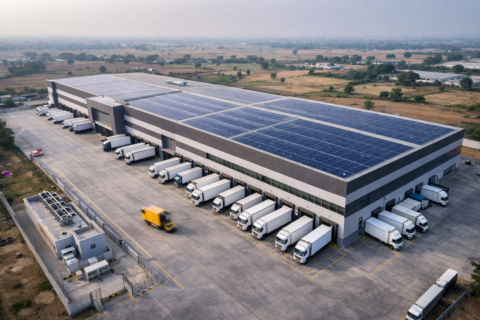 State-of-the-art 250,000 sq ft temperature-controlled warehousing facility with automated storage and retrieval systems. Features multi-level racking, advanced inventory management, and sustainable energy solutions including 500kW solar capacity and LEED Gold certification.